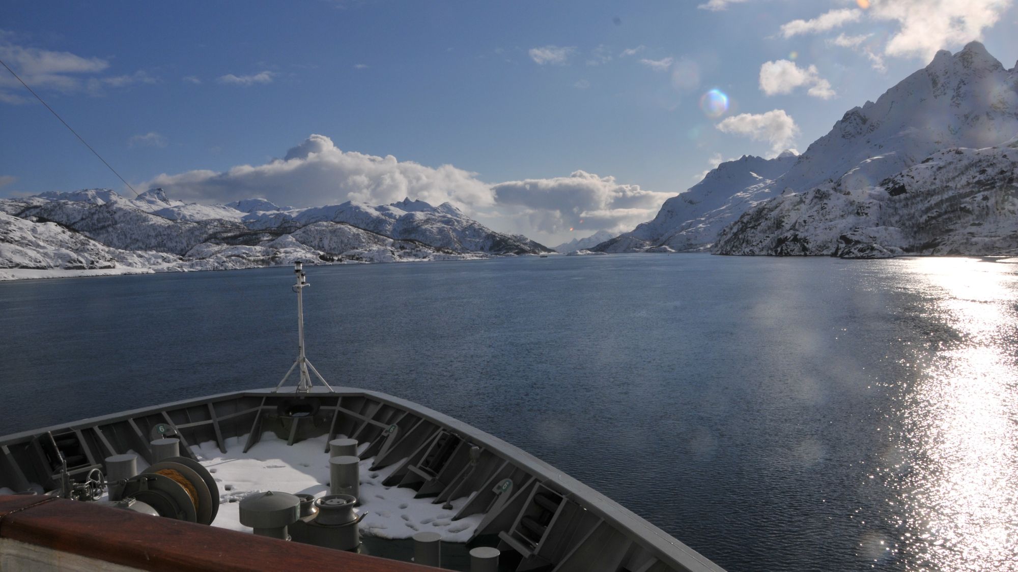 Im Laufe des Tages fahren Sie durch die ruhigen Wasserwege der Lofoten und Vesterålen und passieren inspirierende Landschaften aus Fjorden und Bergen. Am Abend passieren Sie den engen und schnell fließenden Raftsundet – einen der dramatischsten Wasserabschnitte Norwegens – bevor Sie Stokmarknes erreichen, die Geburtsstätte von Hurtigruten. Hier erzählt das Hurtigruten Museum die Geschichte, wie sie vor mehr als einem Jahrhundert Norwegens Küste verbanden, ein Erbe, das sie bis heute leitet.